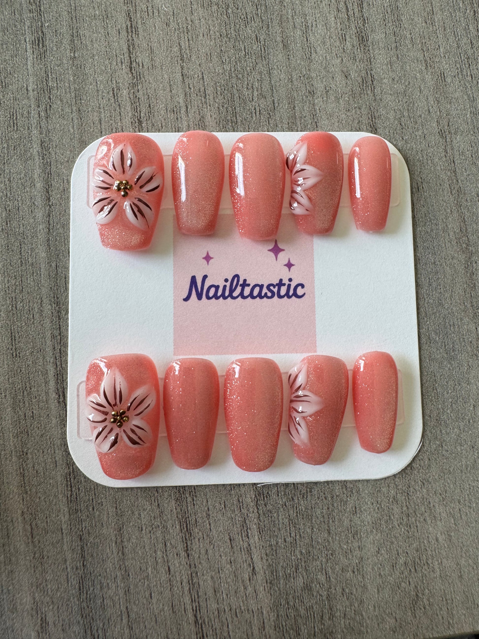 * Elegant Design: These handmade press-on nails feature stunning 3D flowers, adding a touch of sophistication to your look. đ¸